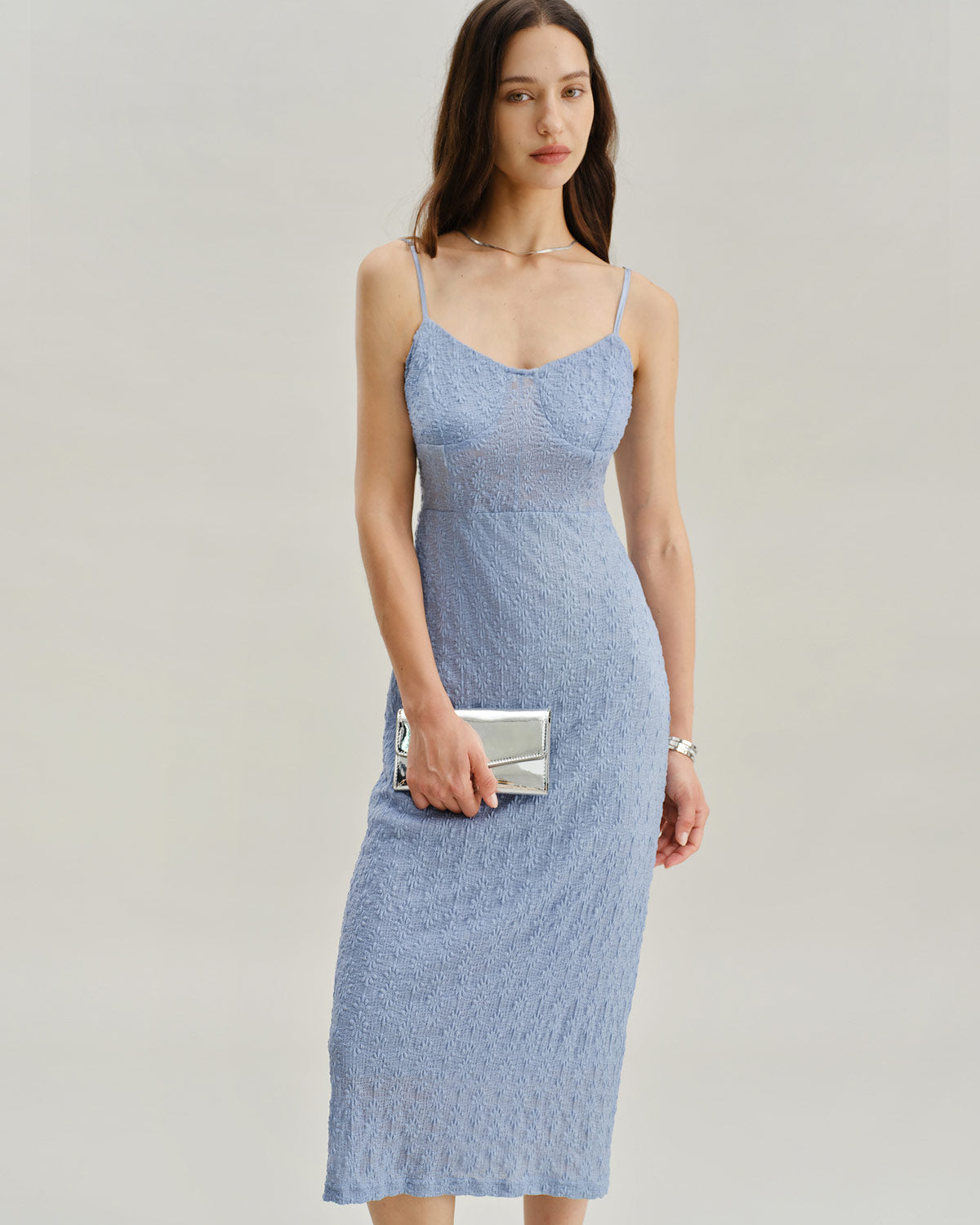 Sueña™ Mavi Dantel Slip Vücuda Oturan Midi Elbise