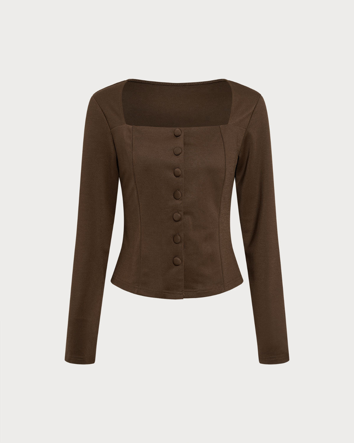 Kahverengi Kare Yaka Düğmeli Bluz