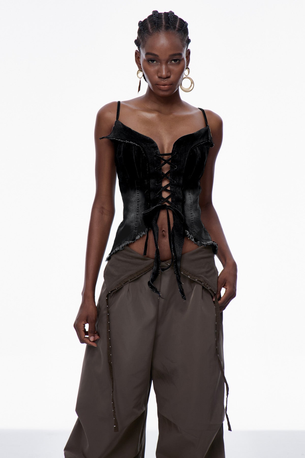 Carl Siyah Bağcıklı Saçaklı Kot Üst
