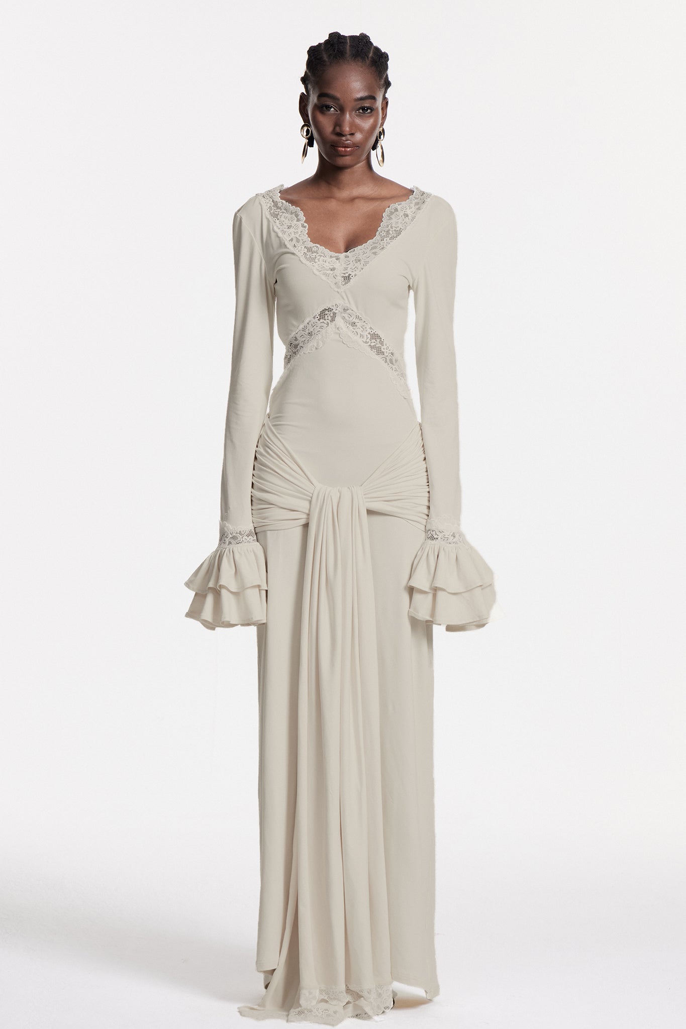 Chizuru Dantel Bağcıklı Uzun Elbise