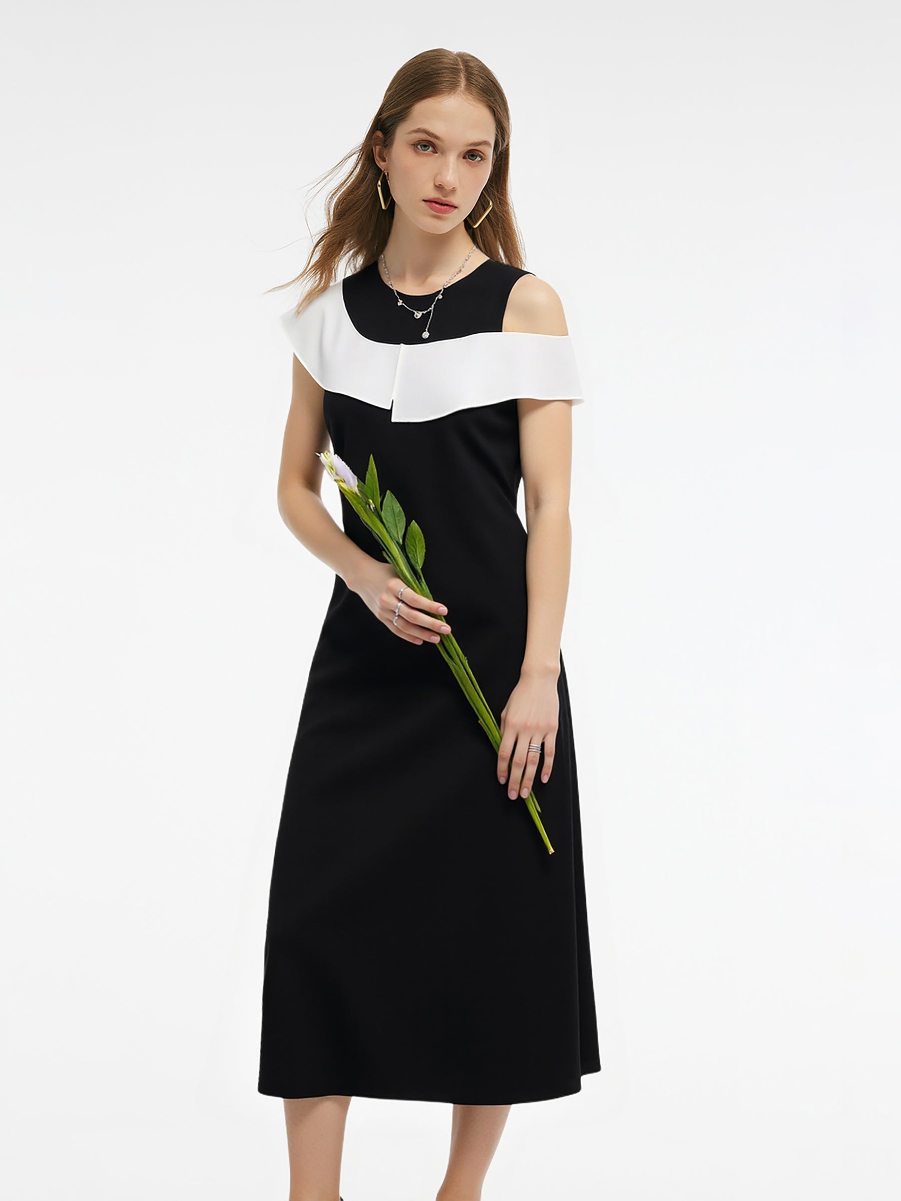 Renk Bloklu Volanlı Kadın Örgü Midi Elbise