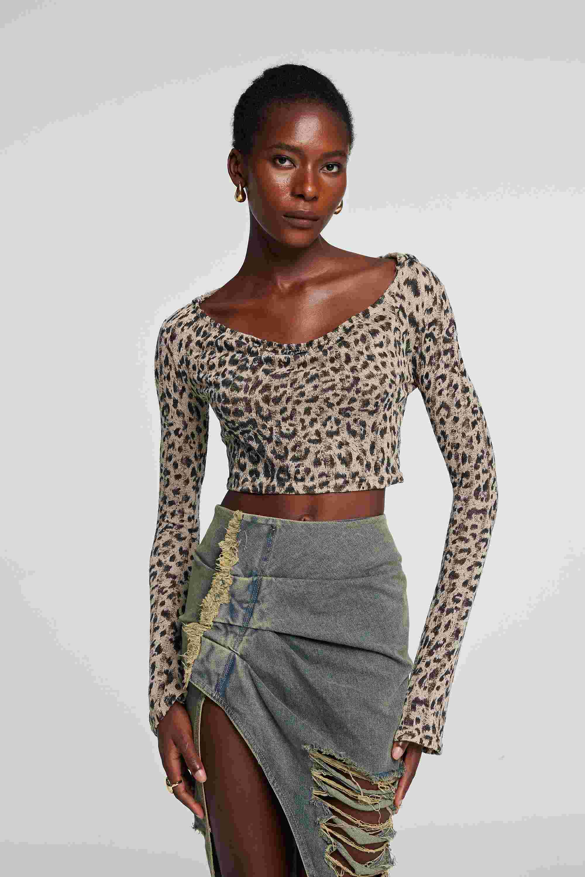 Delta Uzun Kollu Leopar Yırtık Crop Top