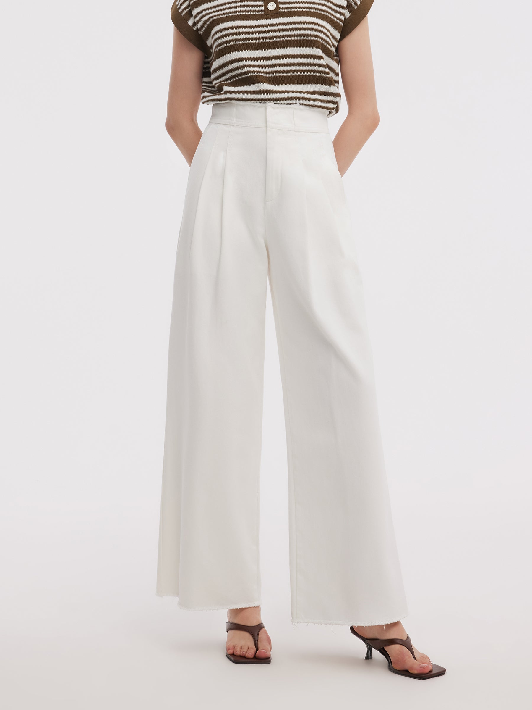 Kot Yıpranmış Kenarlı Kadın Geniş Paça Kot Pantolon