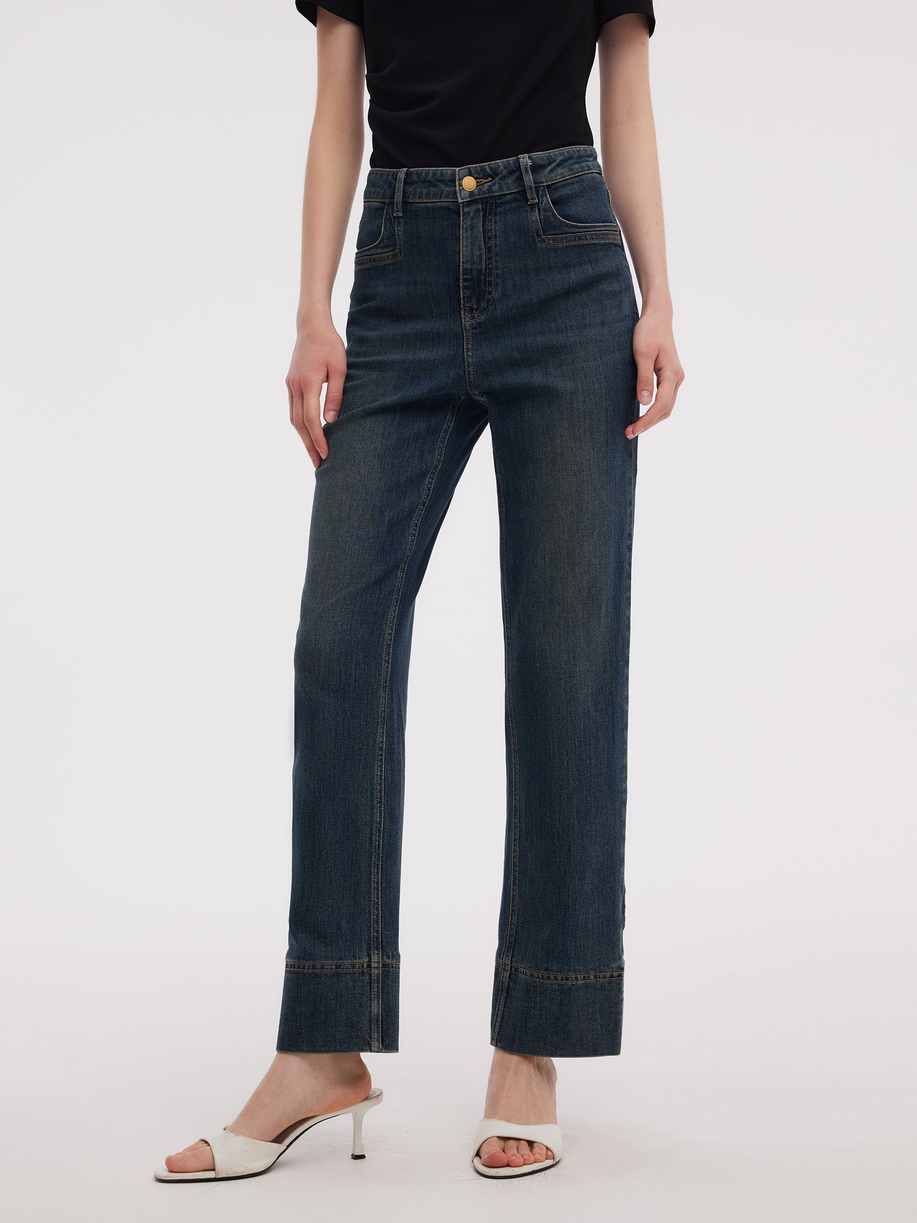 Kot Kadın Bilek Boyu Paçalı Kot Pantolon