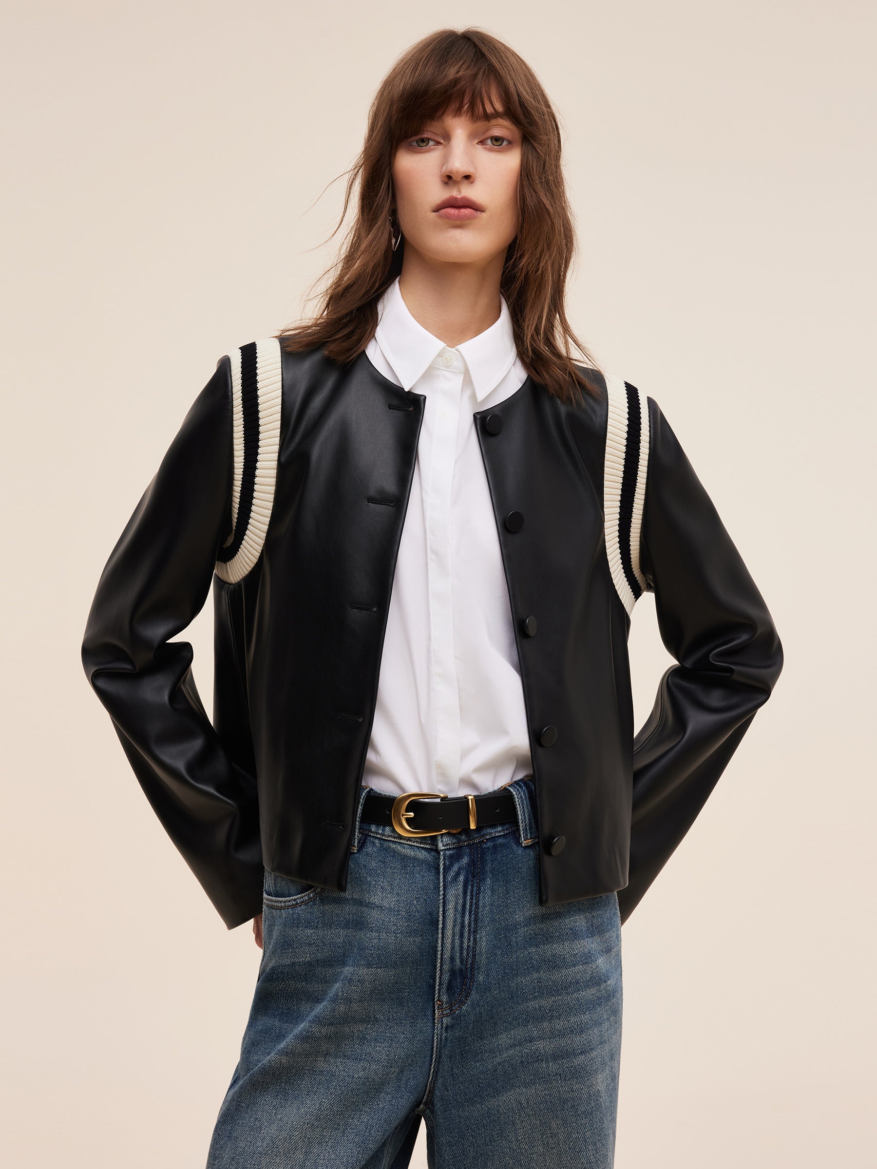 Çevre Dostu Pu Deri Kadın Patchwork Ceket