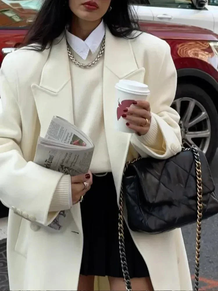 Birinci sınıf yün karışımından üretilen bu zamansız uzun çizgili palto ile zahmetsizce şık kalın. Özel kesimi ve klasik fildişi rengi, onu hem gündelik geziler hem de resmi etkinlikler için çok yönlü bir seçim haline getiriyor. Stilinizi sıcak tutmak için mükemmel!