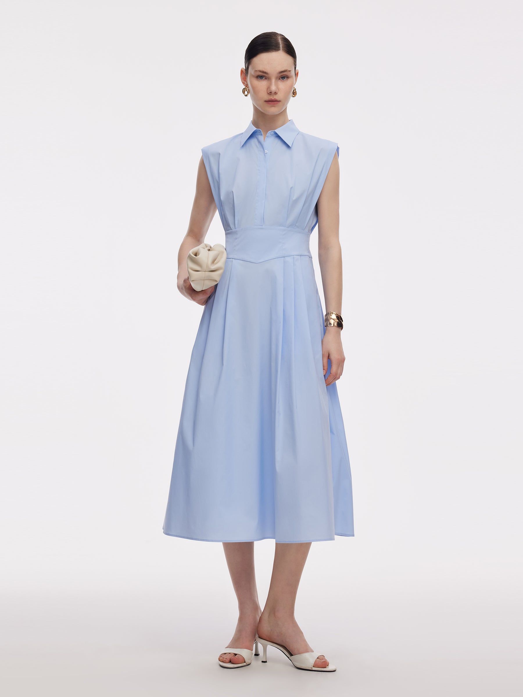 Büzgülü Bel Kadın Kolsuz Gömlek Uzun Elbise