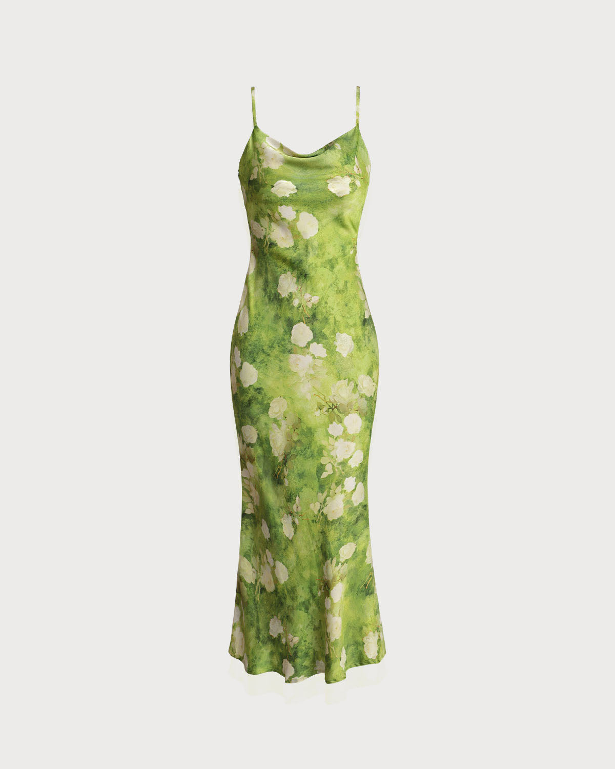 Sueña™ Yeşil Çiçekli A Kesim Midi Elbise