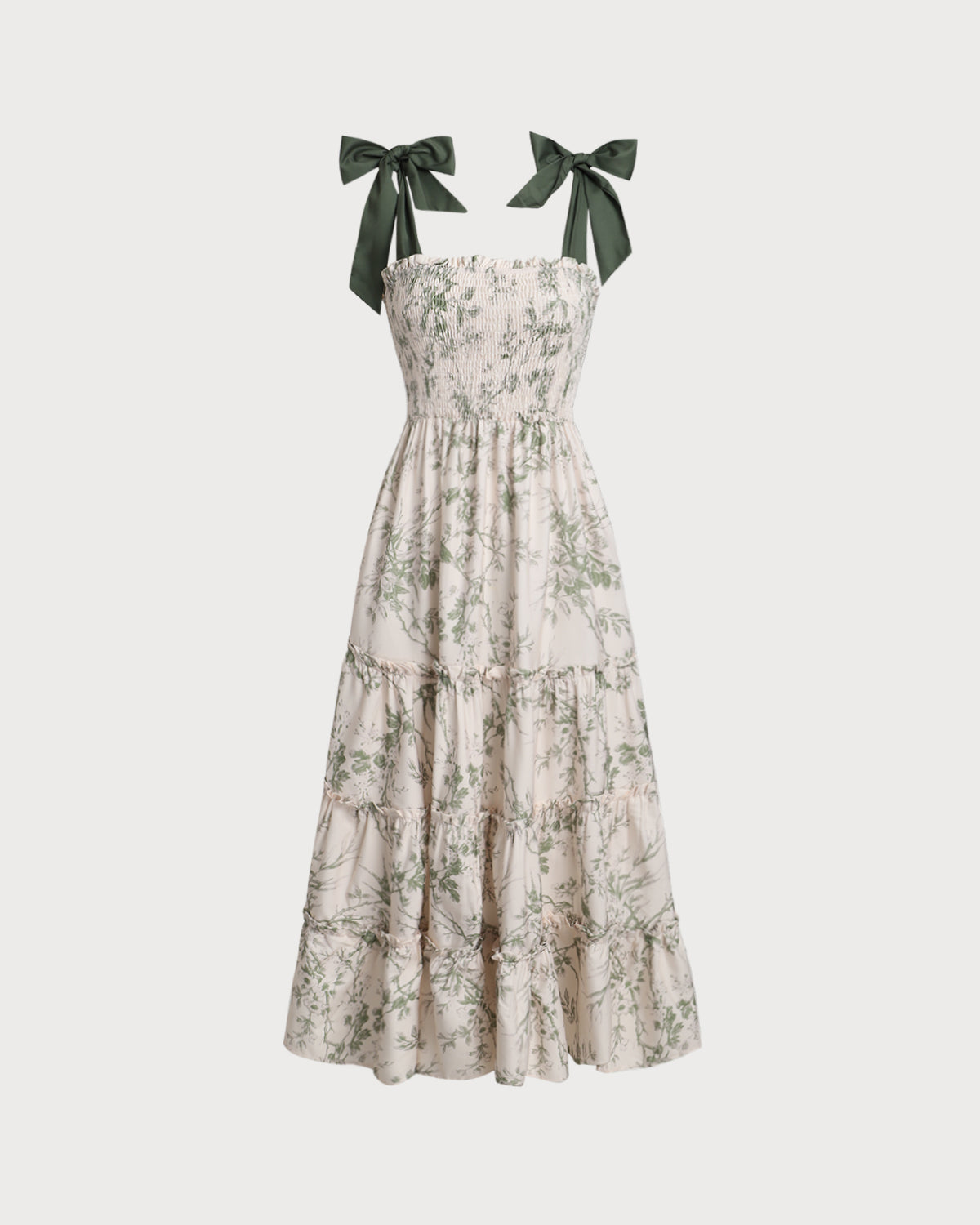 Sueña™ Yeşil Çiçekli Bağcıklı Midi Elbise