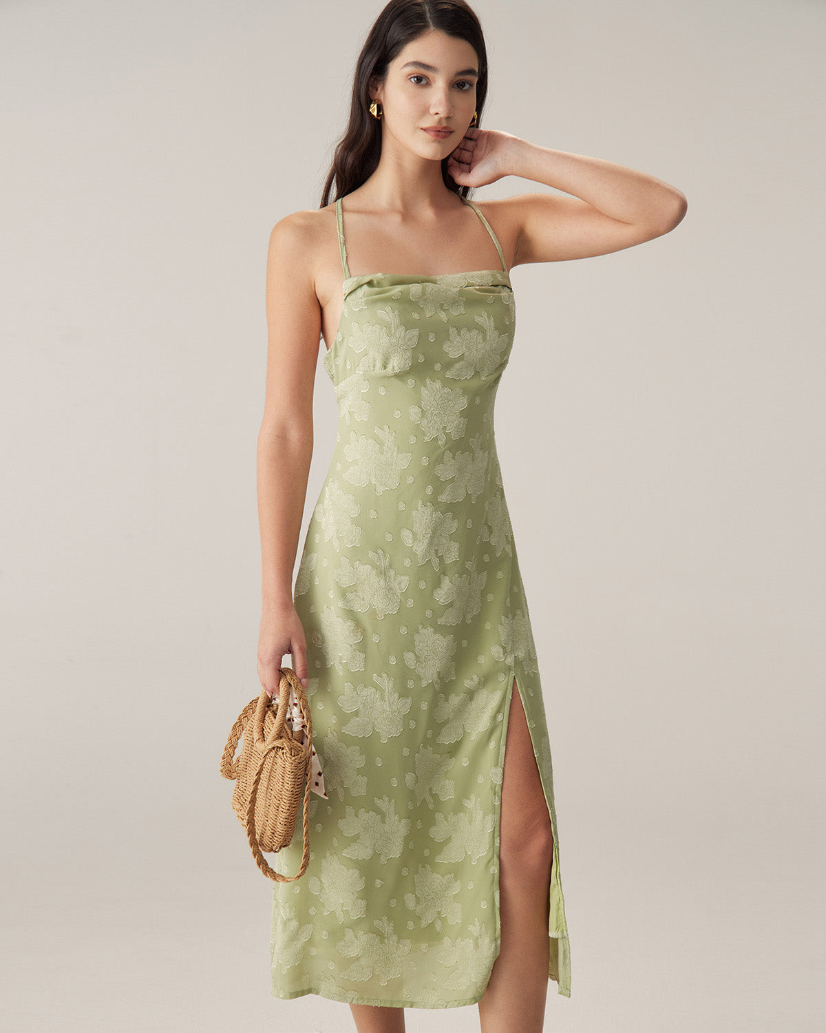 Sueña™ Yeşil Jakarlı Sırtı Açık Slip Midi Elbise