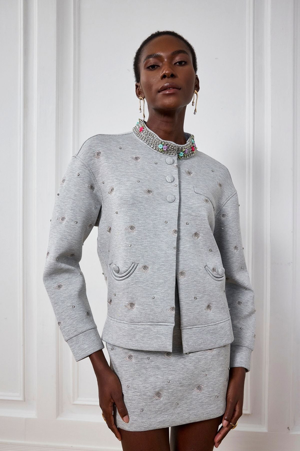 Greta Taşlı Gül Desenli Ceket