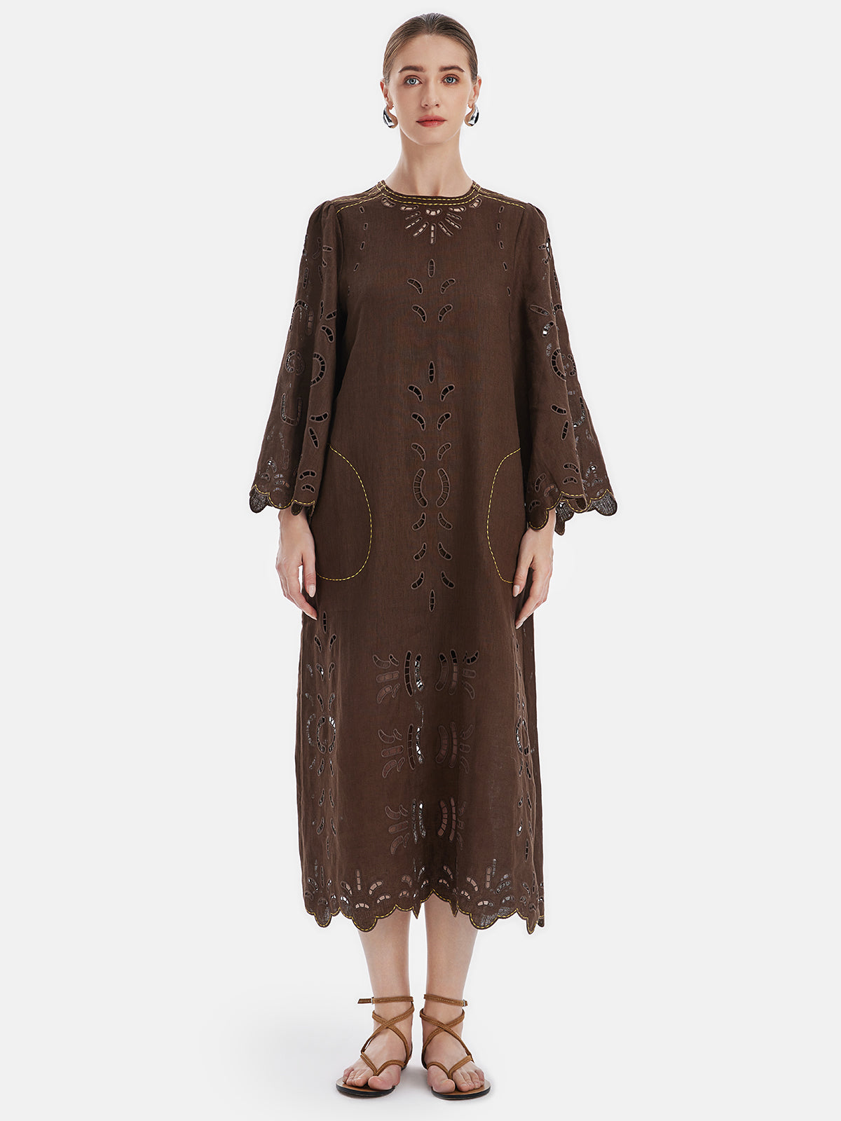 İçi Boş Keten Rahat Kesim Tatil Elbisesi