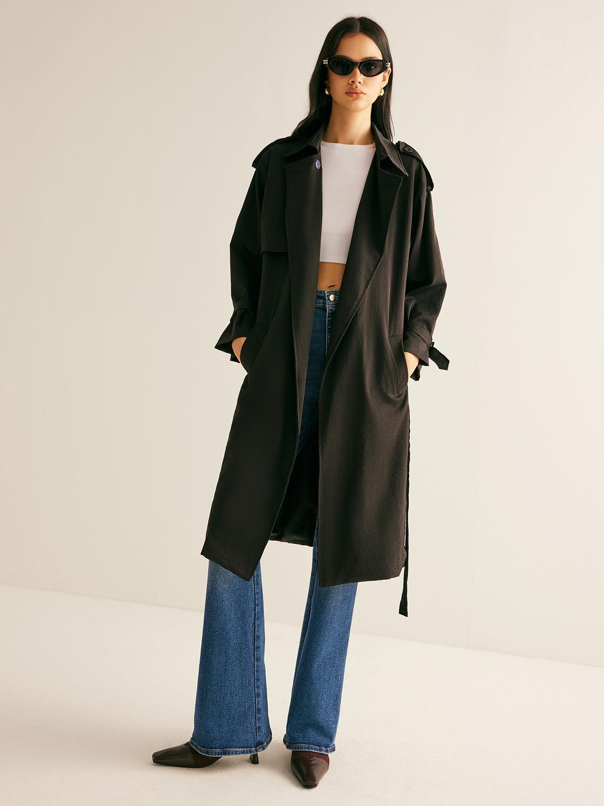 Jet Black Uzun Trençkot, minimal tasarımı ve modern kesimiyle zarafeti ve fonksiyonelliği bir araya getiriyor. Her mevsimde kullanıma uygun yapısıyla günlük şıklığınızı tamamlayan bu parça, her ortamda dikkat çekici bir görünüm sunar. Geniş yakası, rahat kesimi ve bağlama kemeriyle hem konfor hem de şıklık sağlar.