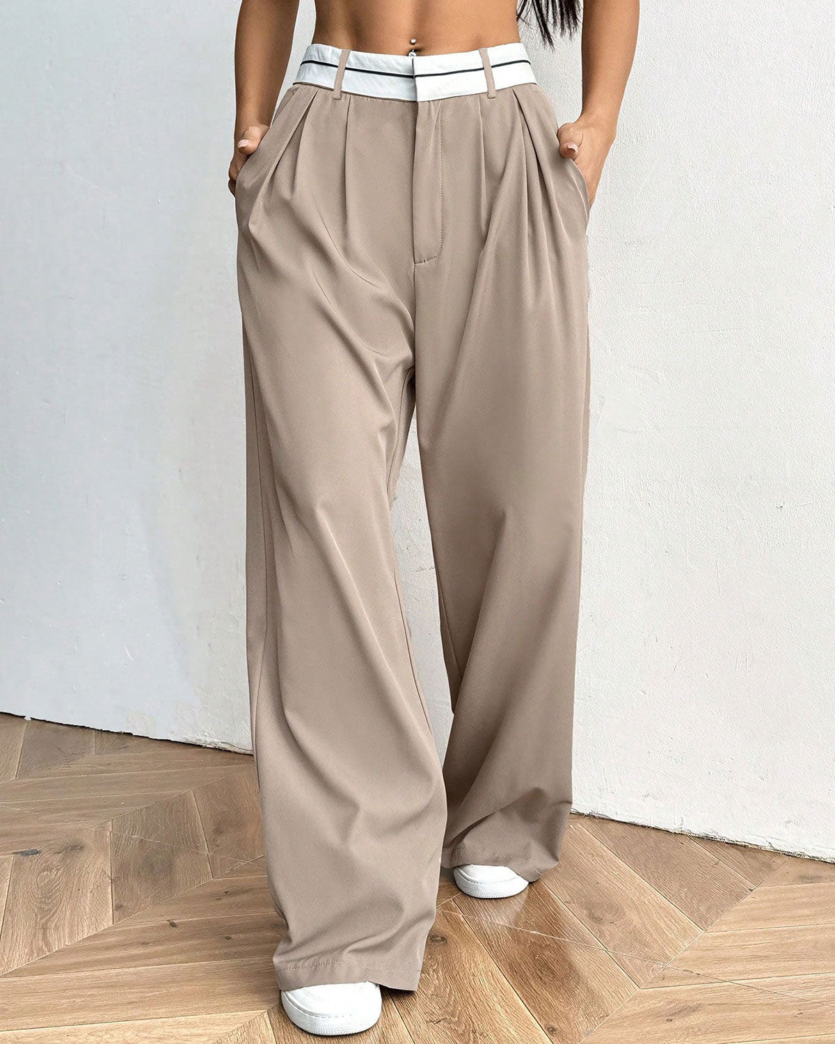 Haki Kontrast Düz Günlük Pantolon
