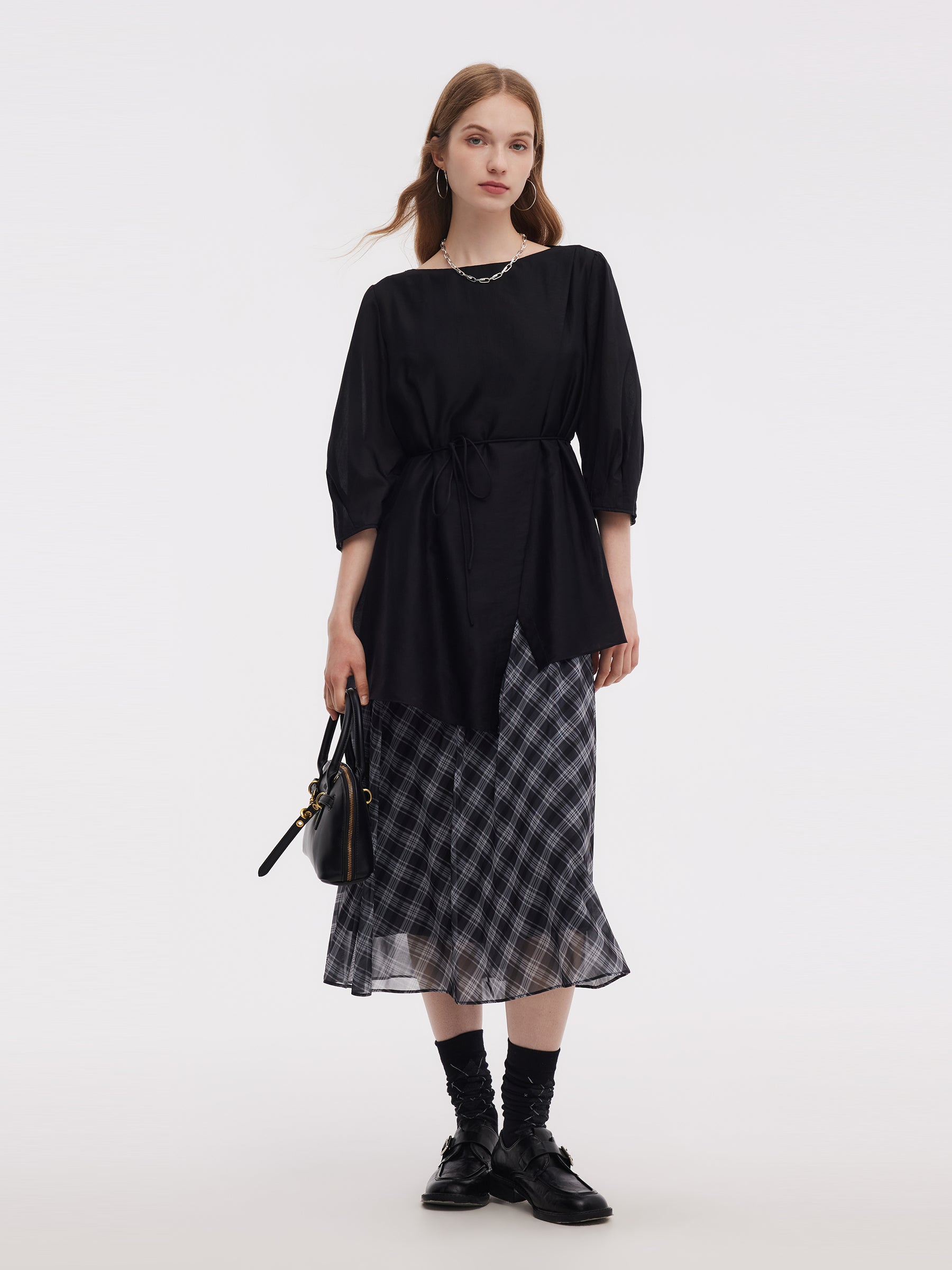 Lyocell Karışımlı Üst Ve Kolsuz Ekose Uzun Elbise İki Parçalı Takım