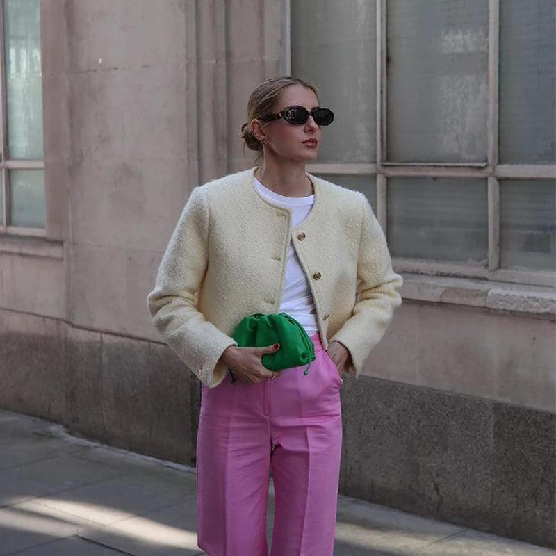 Bu zamansız düğmeli blazer ceket ile gardırobunuzu yükseltin. İnce dokulu kumaş ve özel dikim silüet ile üretilen bu parça, hem profesyonel hem de gündelik görünümler için mükemmeldir. Minimalist tasarımı çok yönlülük sağlayarak onu her durum için temel bir parça haline getirir.