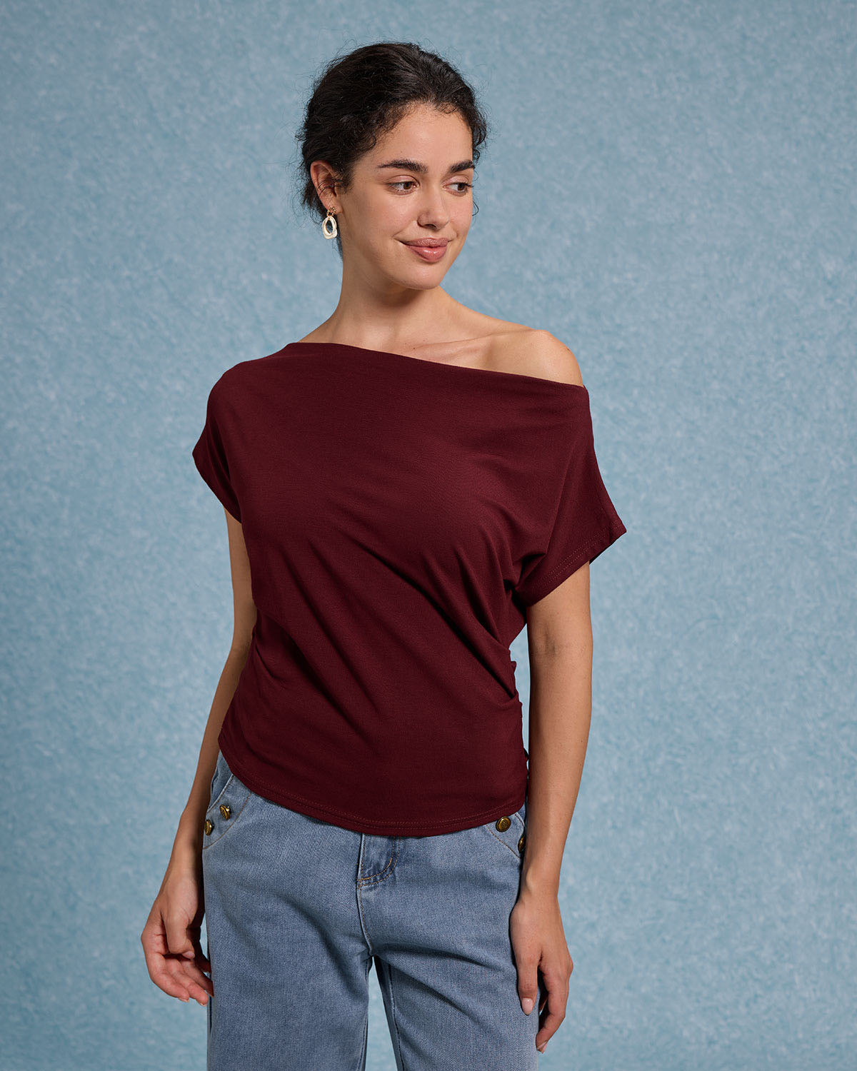 Sueña™ Kırmızı Kapşonlu Omuzdan Açık Tişört