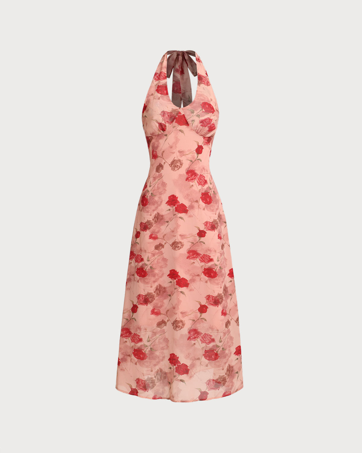 Sueña™ Kırmızı Çiçekli Büzgülü Askılı Uzun Elbise