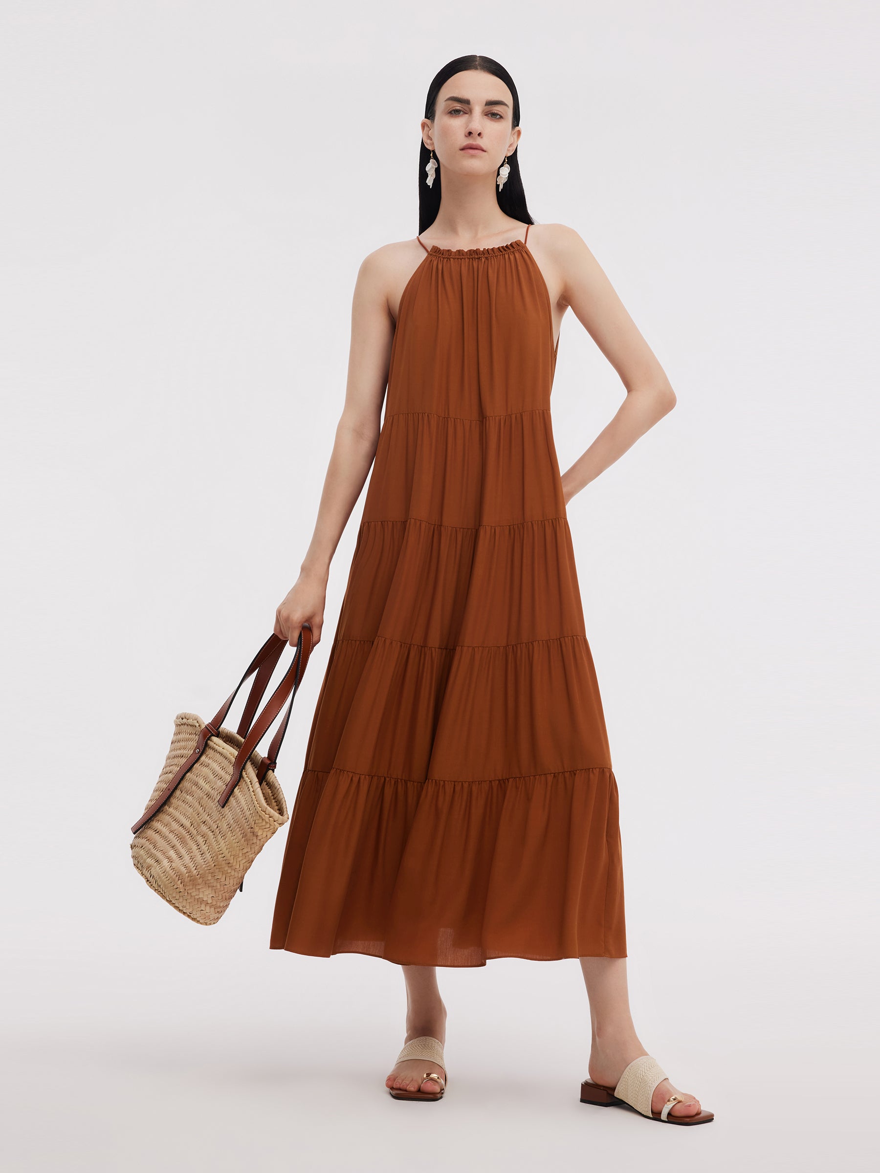 Tencel Asetat Karışımlı Kadın Askılı Uzun Elbise
