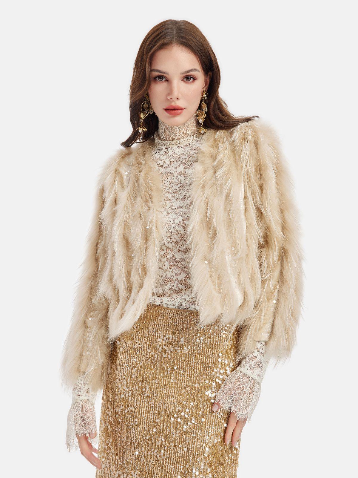 Tüy detaylı ve ışıltılı bu ceket, iddialı ve göz kamaştırıcı bir tarz için mükemmel bir seçimdir. Özel davetlerden akşam yemeklerine kadar birçok ortamda stilinizi ön plana çıkarır. Yumuşak dokusu ve şık tasarımıyla, gardırobunuzun vazgeçilmez parçalarından biri olacak.
