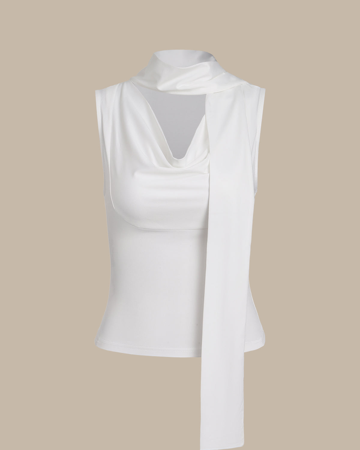 Sueña™ Beyaz Kapşonlu Yakalı Büzgülü Tank Top
