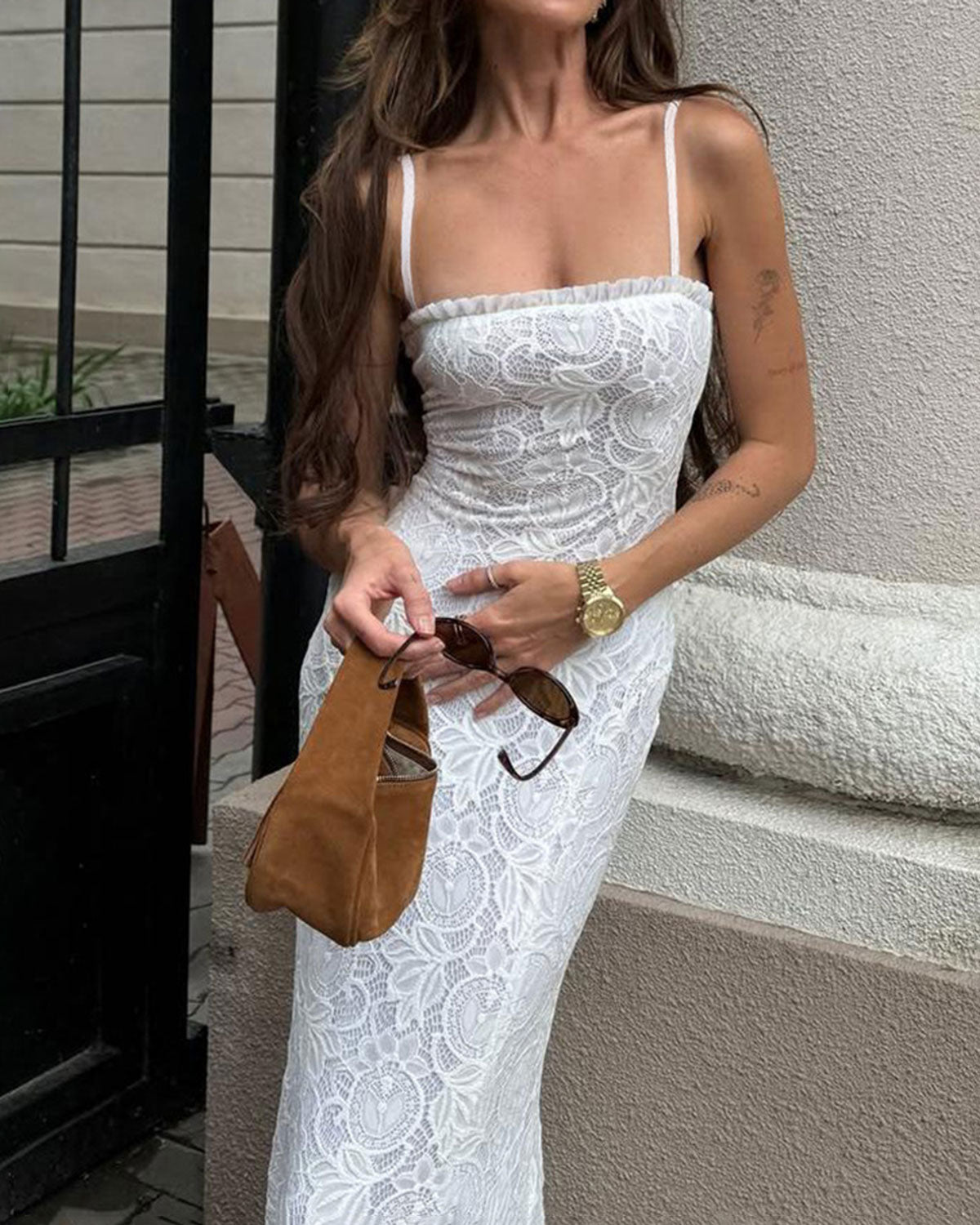 Beyaz Dantel Vücuda Oturan Slip Uzun Elbise
