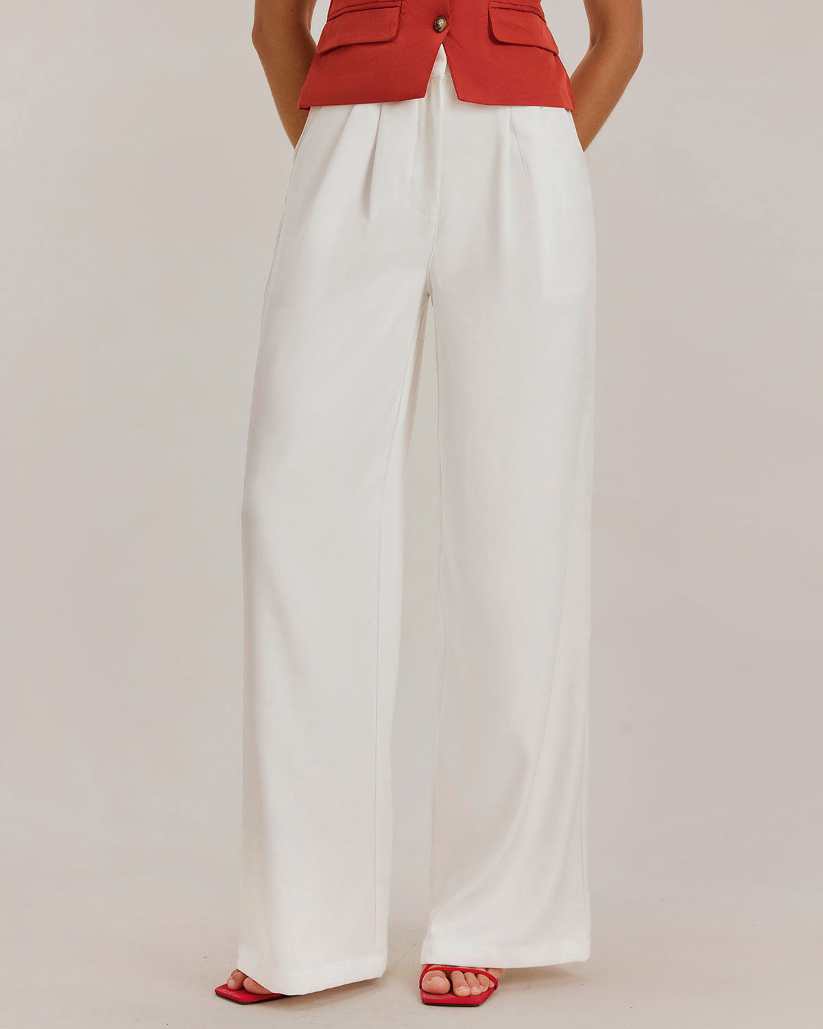 Sueña™ Beyaz Buruşuk Düz Pantolon