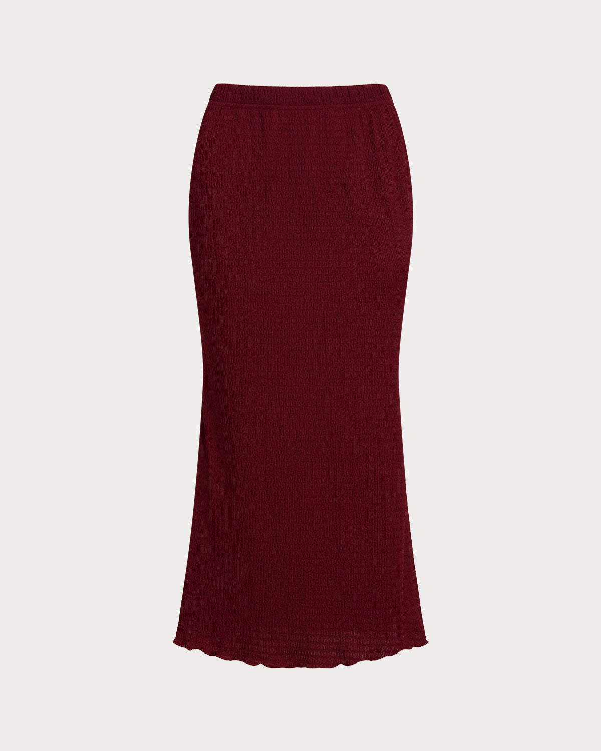 Şarap Kırmızısı Örgü Lastikli Bel Denizkızı Midi Etek