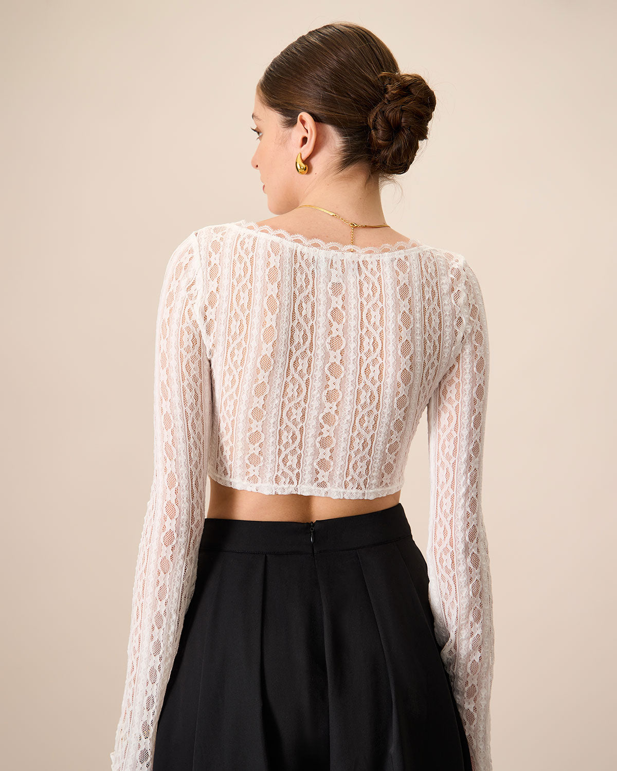 Kadın Beyaz Dantelli Şeffaf Kısa Tişört