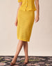 Sarı Yüksek Bel Diz Boyu Örme Etek